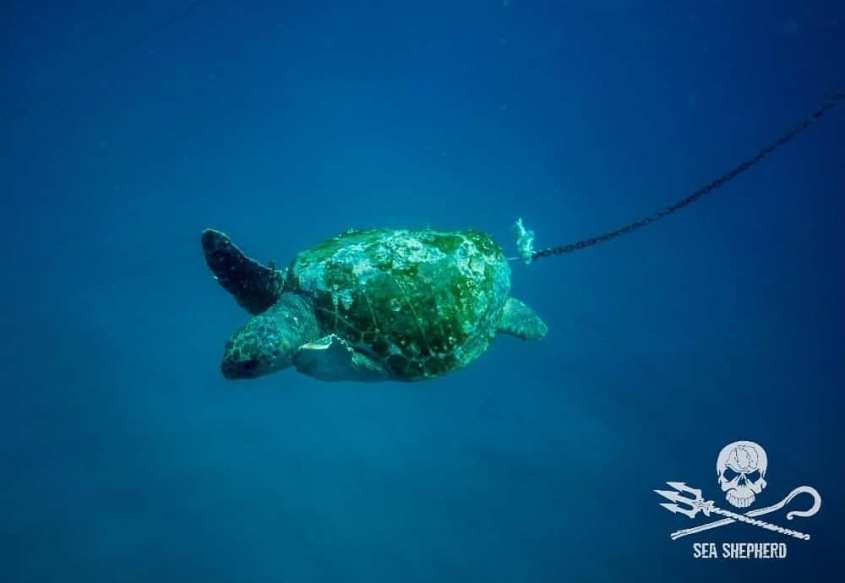 This is the story of “Beckie”, an endangered loggerhead sea turtle that was saved by our crew. When we found her, she was already very exhausted and the hook was stuck in her side. We were able to get her for medical treatment on board immediately so that her injuries could be properly treated.