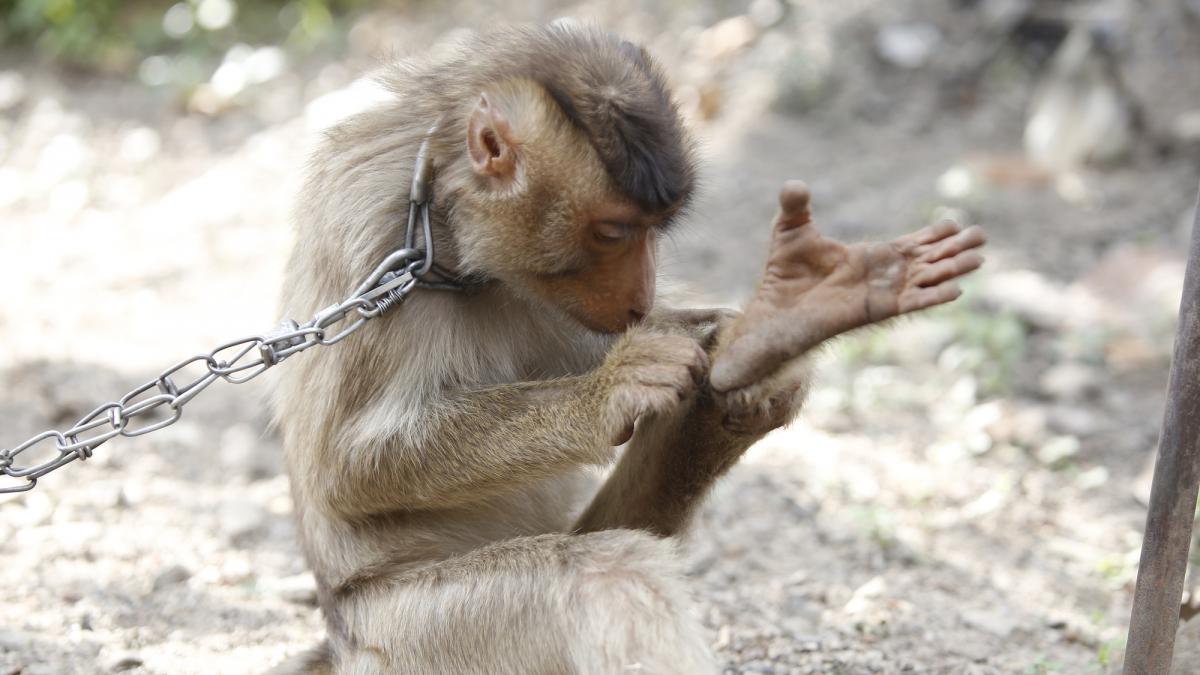 Monkeys who fight back will have their fangs torn out. Accordingly, many animals lose their minds and hurt themselves.