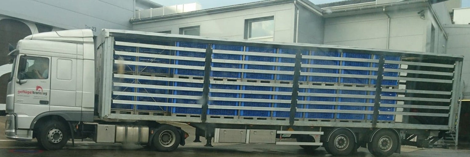 A truck loaded with chickens drives towards Märwil in the canton of Thurgau, to one of the largest chicken slaughterhouses in Switzerland.