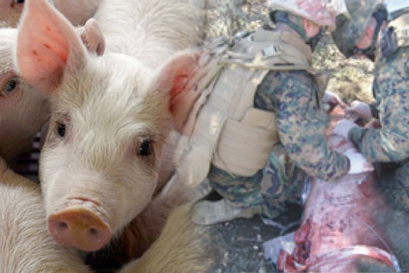 In so-called live tissue training, also known as trauma training, the german military uses live pigs to replace people with war injuries. Even though there are already animal-free methods such as simulation models that depict human anatomy in a lifelike manner.