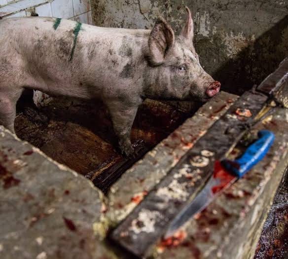 Calves are sold from the trunk of a car with their legs tied together. Emaciated sheep with respiratory problems are hoisted onto closed delivery vans without lights or ventilation.