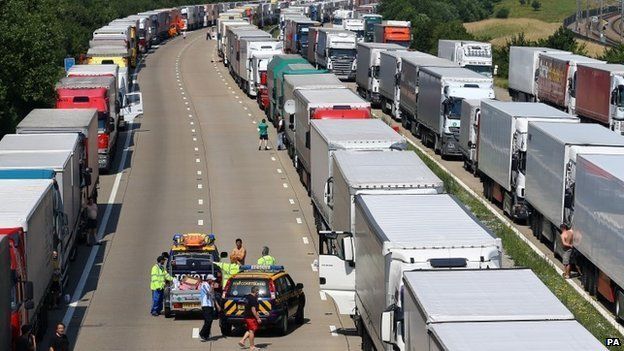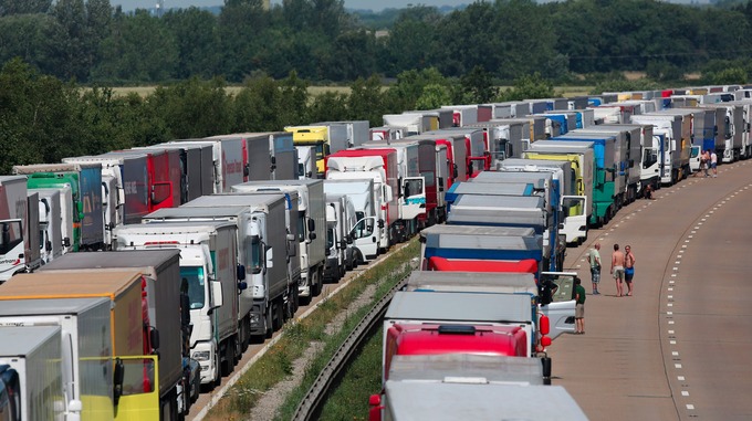 Above – Trucks destined for EU wait their turn (on Kent motorways) in ‘operation stack’