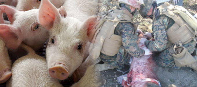 In order to train gunshot treatment, the military uses pigs as “wounded”.