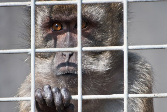 Some brutally taken from the wild, kept in captivity, forced into endless breeding, their offspring subjected to long and risky journeys by road and air, painful tests, poisoning, and finally death. These long-tailed macaques endure terrible suffering, deprived of the rich foliage of the jungle homes and their family and social groups.