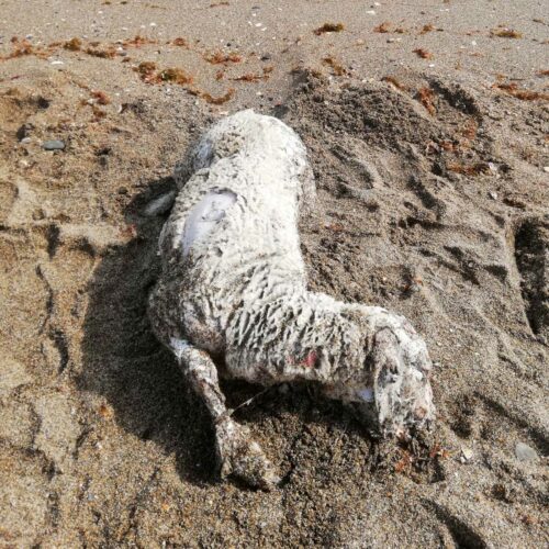 And I mean...Animal Equality has received these pictures of a dead lamb that has just washed up on Trocadero Beach in Marbella.