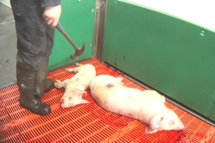 One piglet continued to show signs of life for over four minutes after the first blow of a hammer hit it.
