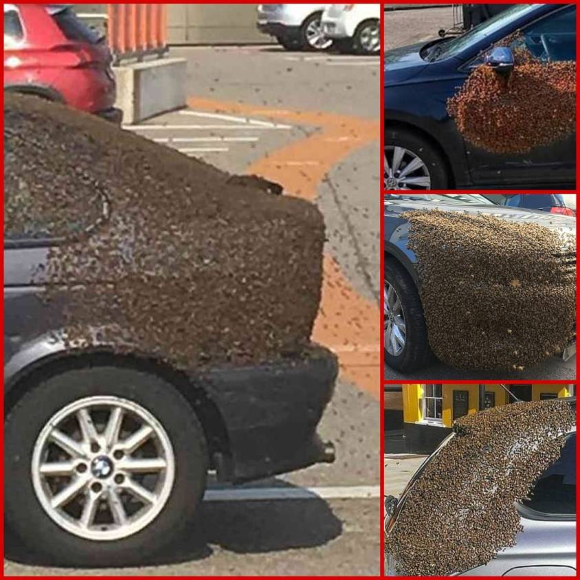 Pictures like these probably make some people freeze in horror: You come to your car and thousands of bees have made themselves comfortable on it.