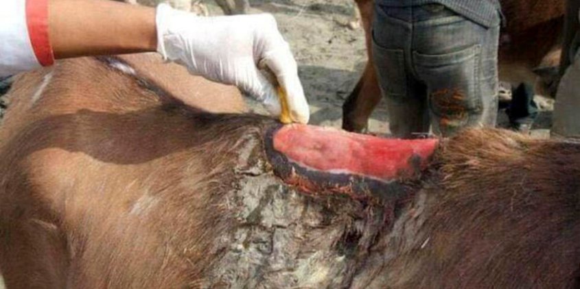Donkeys and mules were observed suffering from open sores, raw skin, and bloody injuries caused by their ill-fitting and makeshift saddles.