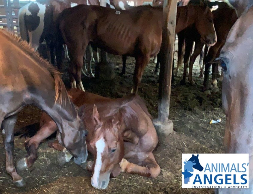 In August, our team observed a draft mare go down multiple times in the pen, only to be forced back up again and again until she was sold, at which time the distressed animal went down yet again.