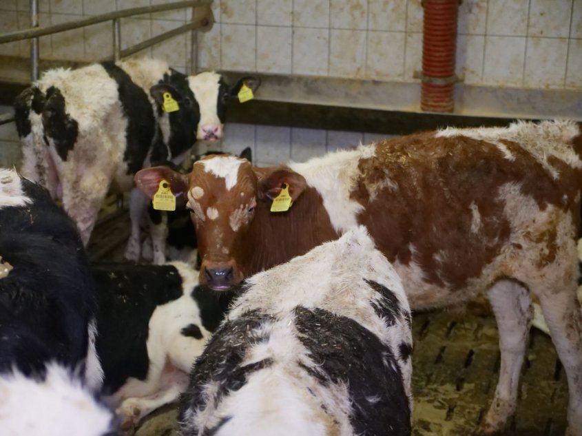 In reality, the calves live on a completely shitty, fully slatted floor, in many places even without rubber mats.