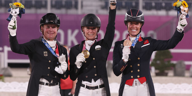 The German dressage team wins gold in Tokyo for the fourteenth time in Olympic history – and everyone is cheering.