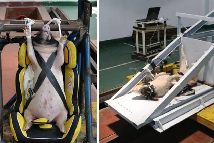 He aimed at the General Motors concern, which at that time still smashed pigs and ferrets in crash tests.