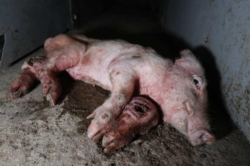 Incapable veterinarians, an unscrupulous farmer and his wife and the people for whom this little pig child is only meat are responsible for this fate.