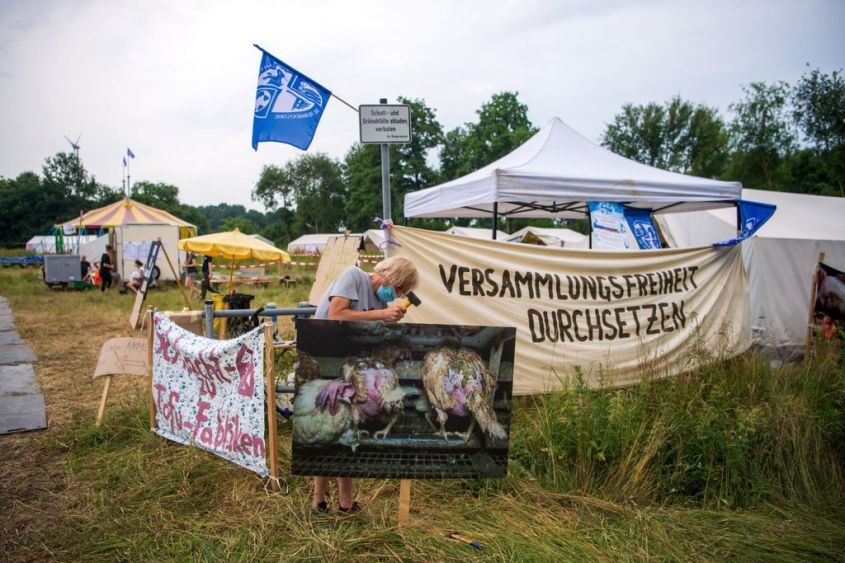 After a legal dispute, on Monday, 12. July, a protest camp against factory farming started in Goldenstedt (a municipality in Lower Saxony).