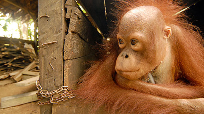 Mother animals are killed by criminals, the young animals are sold and enslaved. In five to ten years, as a result of this horrific business, none of the three orangutan species could exist anymore; their habitat could have disappeared by then.