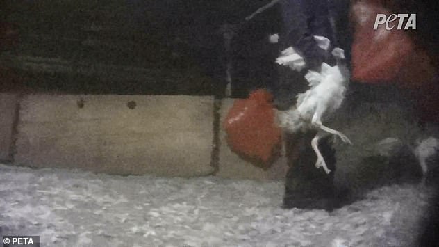 The horrifying masked footage obtained by a worker who was secretly doing a side job for People for the Ethical Treatment of Animals (PETA) also shows that the worker is trampling, kicking, and beating birds.