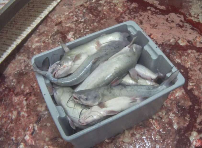 Our investigator also witnessed turtles and unwanted fish caught up in Simmons’ catfish nets removed from the processing conveyors to be ground up alive and, according to one employee, used as feed.