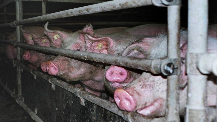 The bigger and bigger sows have to spend half of their lives in crates that are far too narrow, cooped up behind bars that they often gnaw at.