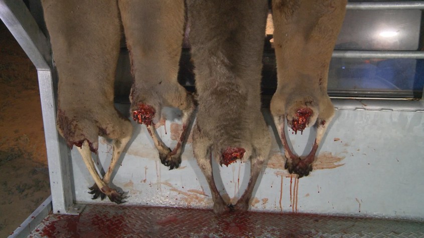The animals are industrially cannibalized to produce dog food, meat and leather, which Australia exports around the world.
