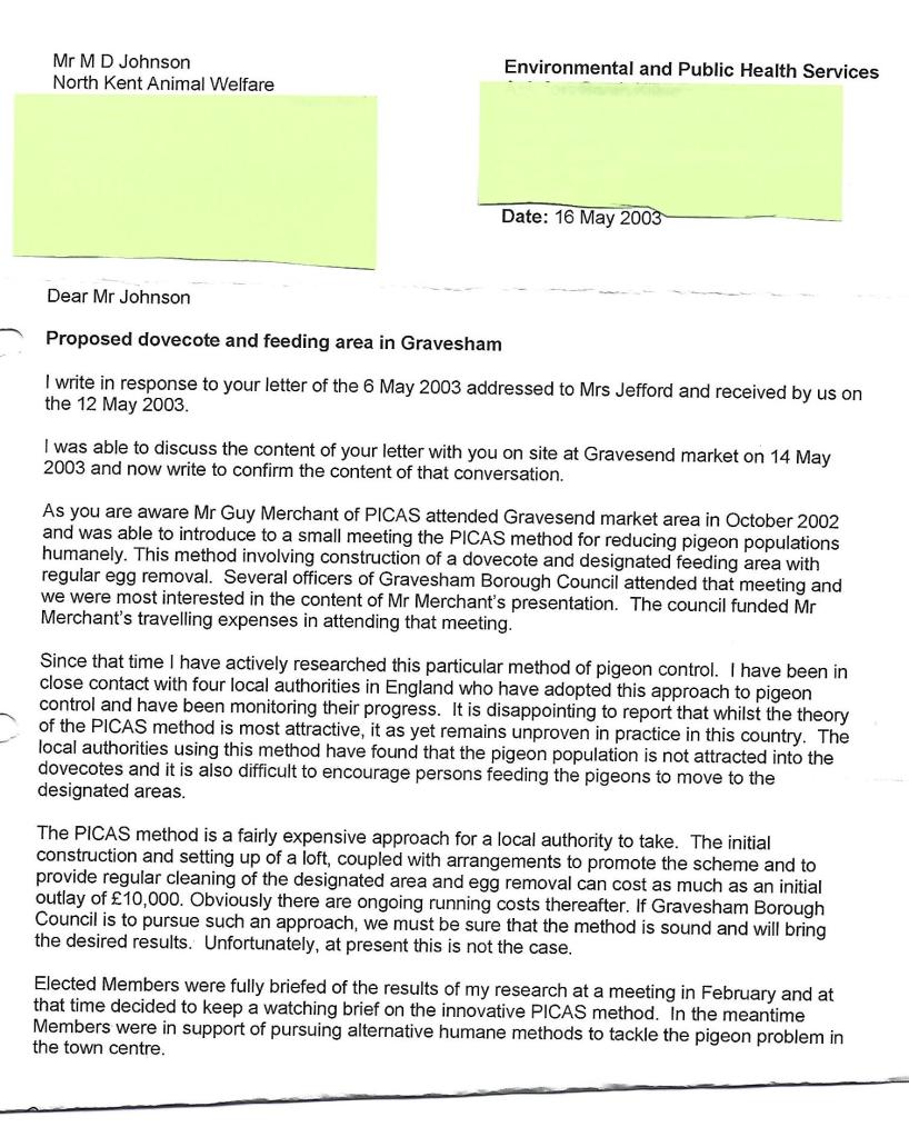 Also, in their letter to myself (see above), the council suggested that they had been in touch with other councils and had no proof that the system proposed actually worked. As part of our presentation; we did supply information on several councils that had adopted the PIUCAS method of bird numbers management. The PICAS site now reflects some more recent issues: