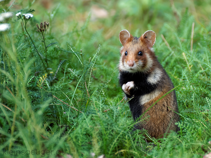 The European hamster is dependent on the agricultural landscape. There he finds steppe-like habitats in which he digs his burrows and finds rich food.