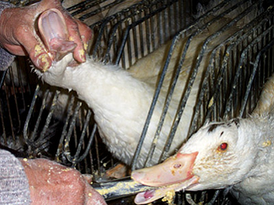 An overtly contradictory statement considering ducks and geese subjected to foie gras production are force fed and their bodies pushed beyond their biological parameters, resulting in intense pain, fear and suffering.