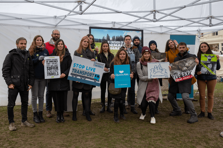 Eurogroup for Animals organised an action in front of the European Parliament ahead of the ANIT Committee vote. From its members investigators reports to the several MEPs who intervened, the call is unanimous: live animal transport over long distances and live export must be stopped.