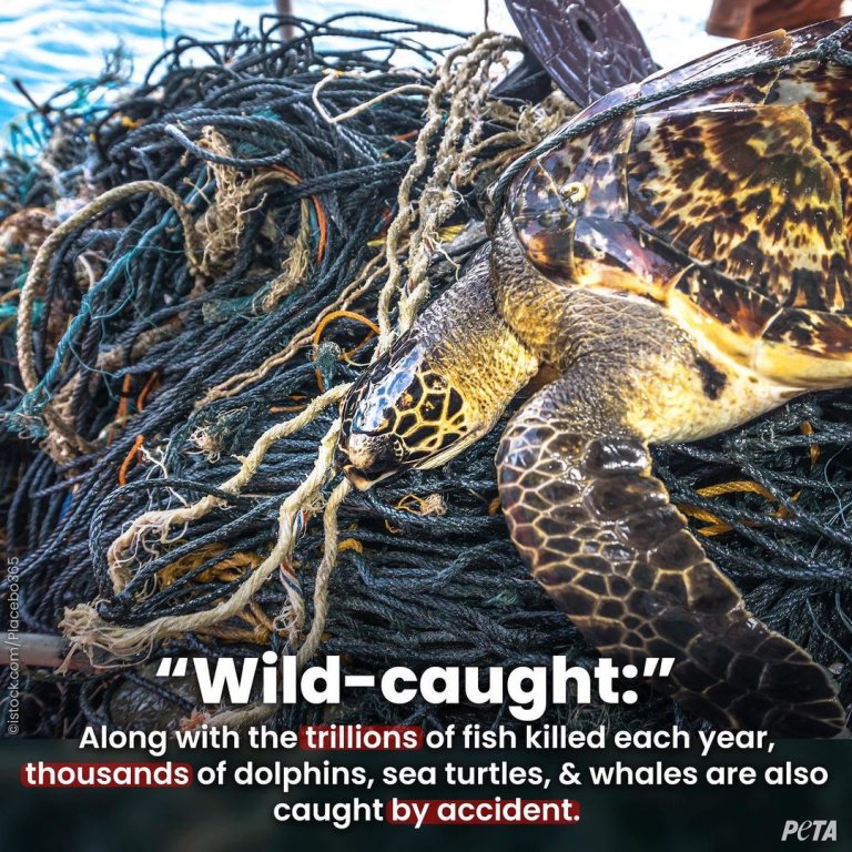 Along with the trillions of fish caught in the sea, thousands of whales, dolphins, and turtles are caught and killed in fishing gear each year.