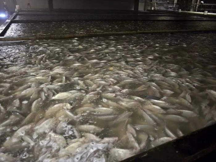 -cannibalism: In one of the farms, the operators mentioned that the fish had not been fed for at least 6 months, so they began to eat each other;