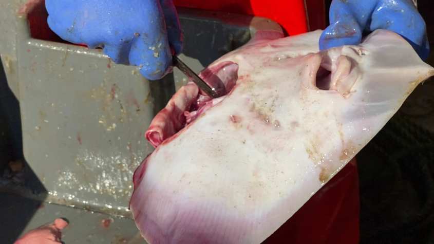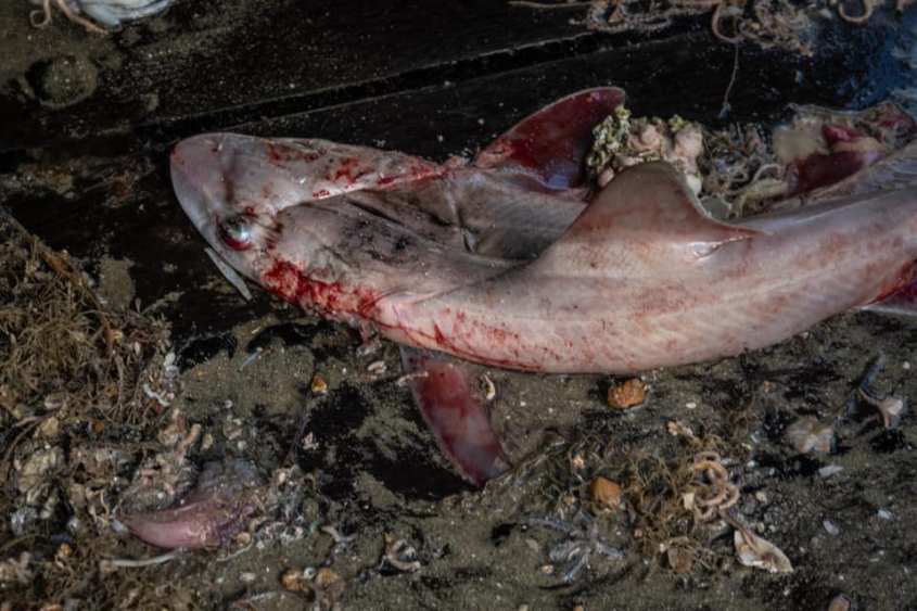 The eyes of many of the fish, which are sensitive to pain, are pushed out of their heads by the rapid pressure difference when the net is rolled up.