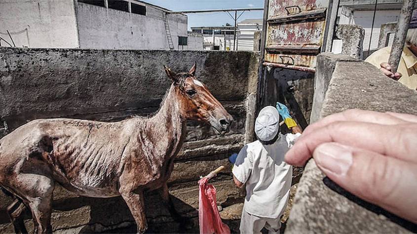 The mare will be killed anyway as soon as she can no longer be inseminated quickly.