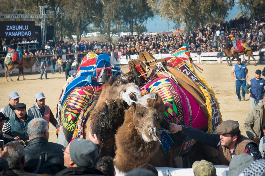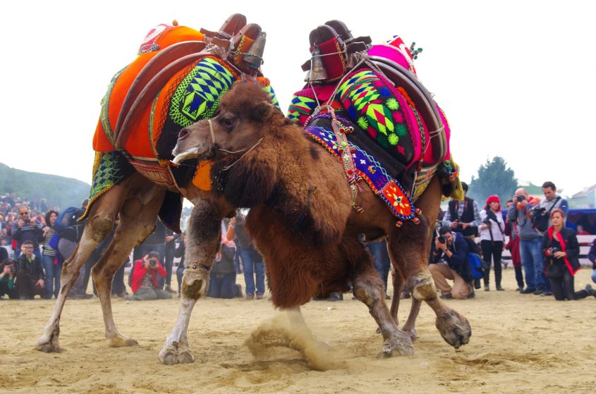 And meanwhile, camels wrestle until one or the other topples over, screams out, or retreats in fear.