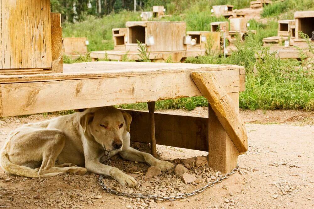While only a few dozen dogs raised for the race will ultimately be deemed fit enough to compete, many more will be kept tethered and chained for most of their lives, some with nothing more than dilapidated plastic crates as their shelter.