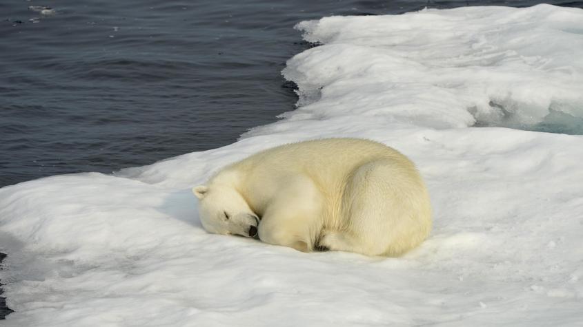 Asleep on an ice floe, this polar bear looks so peaceful and cozy plush. But he is in great danger. © picture alliance / imageBROKER, FLPA/Malcolm Schuyl