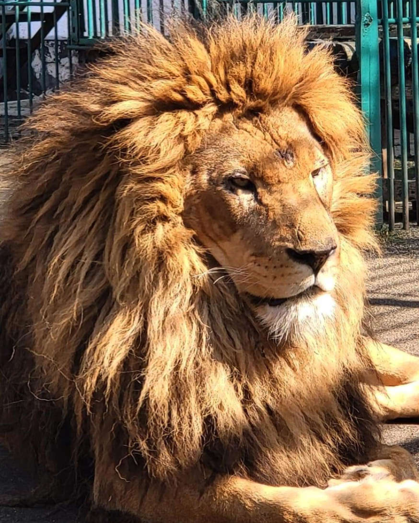As well as the mortal danger from Russian guns, which also creates stress and restricts the animals’ movement, the big cats face food shortages from the private zoo’s lack of funds. On average, an adult lion needs five kilograms of meat a day, roughly equivalent to a bag of potatoes.