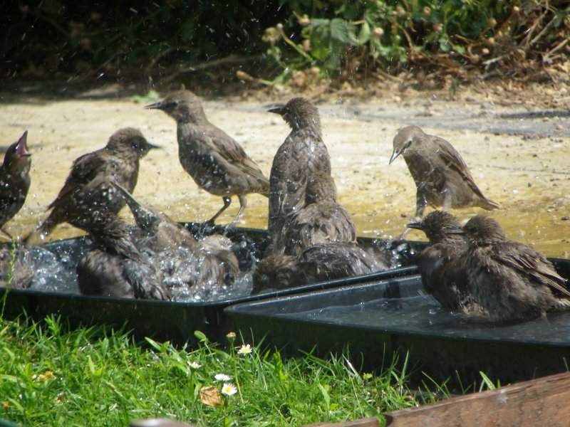 I went out this morning and put fresh water into all the water compartments that we have in the garden – currently about 7; in conditions like this especially everyone must ensure that animals have lots of fresh cool water to drink and bathe in. I took these pictures of all the birds enjoying their morning bath earlier, cleaning their feathers down and ridding themselves of all the dust, whilst having a good drink at the same time.