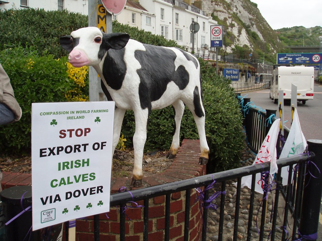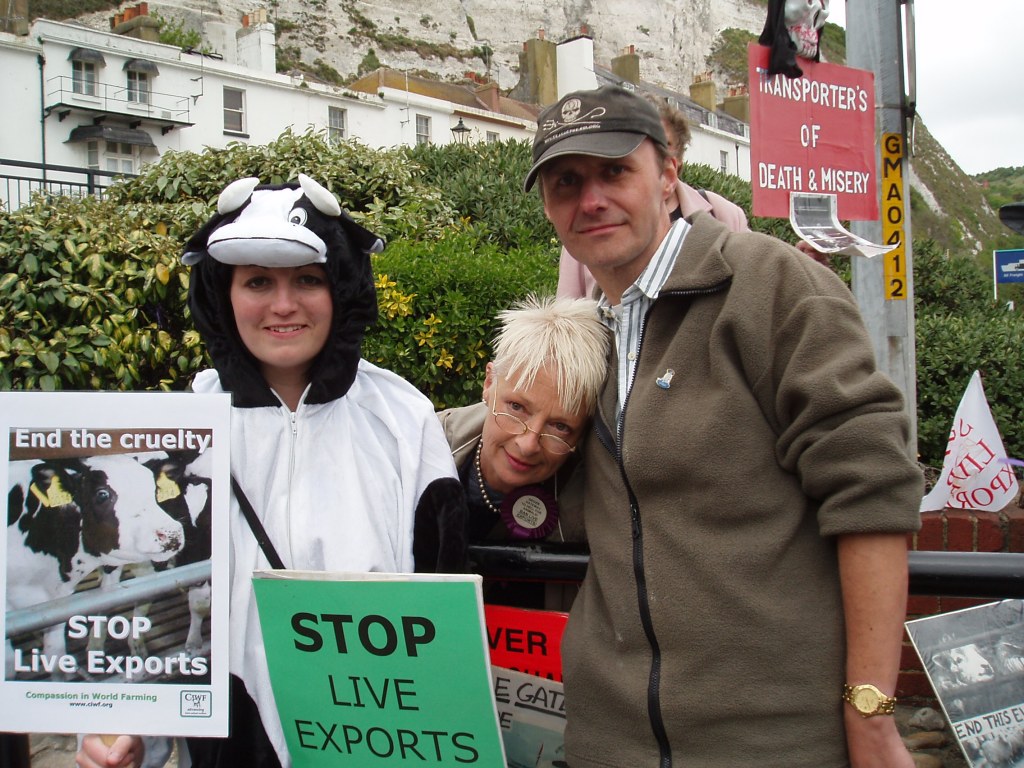Above – Dover demo with animal buddies fighting live calf exports.
