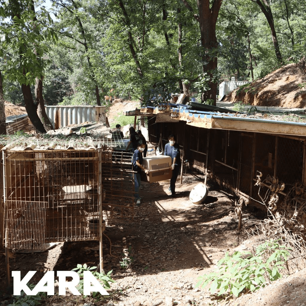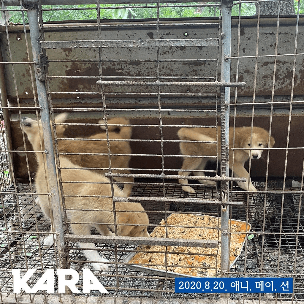 The ‘Korean Dogs’ action header and photos provided by KARA of dog meat farms suffering: