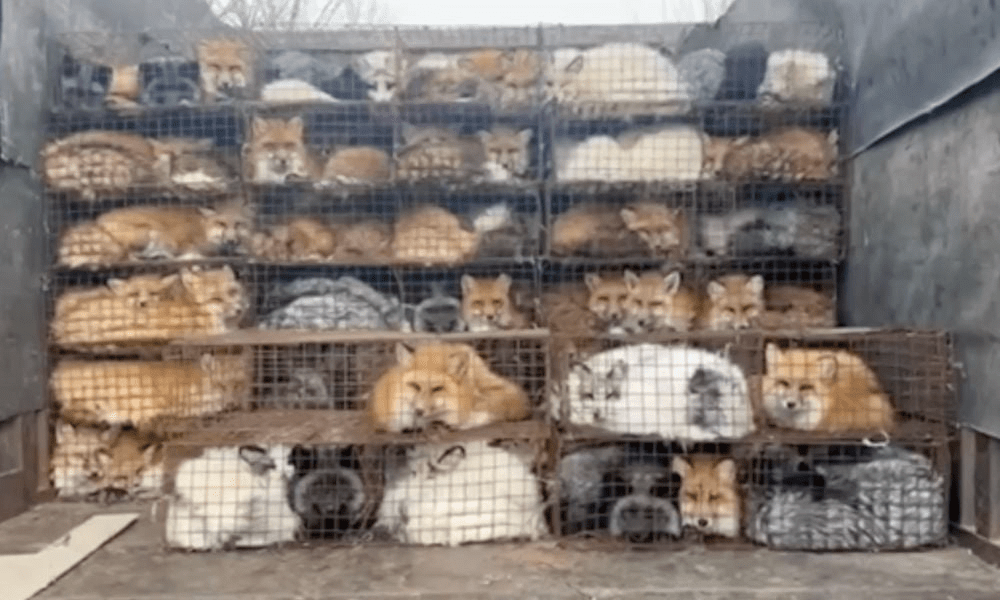 Thousands of young foxes were seen suffering in horrific conditions before being pulled out of cages with iron tongs or metal poles and violently killed.