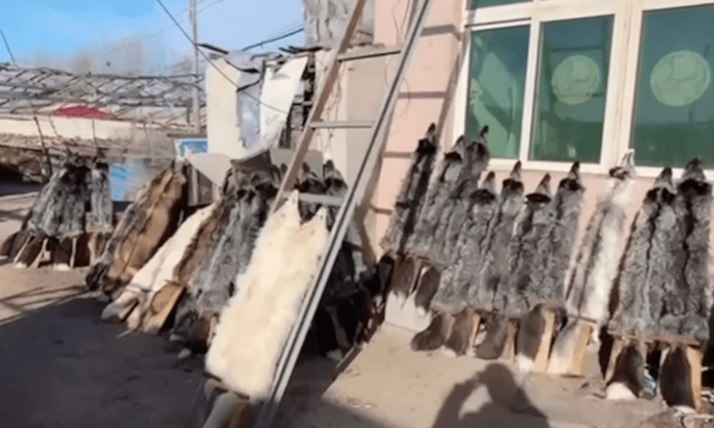 The animals’ bloody carcasses are then sold for human consumption, according to investigators, while their fur is sold to the fashion industry.