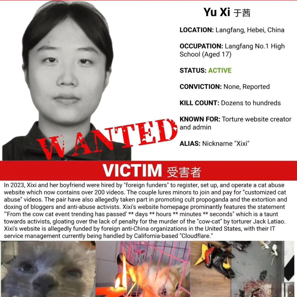 General News, Uncategorized March 6, 2024March 6, 2024 (US) NEW YORK CITY March 8, 2024: Protest Cat Torture Rings INFO: https://www.felineguardians.org/take-action/demonstration?fbclid=IwAR2n-t-msTPWN7XTLJj1q9UtYl-jEAnMS3QeMPUqZq90B1UUV1vricUozrE Abuser list made into posters for the protest in NYC this Friday! Share this: Click to share on X (Opens in new window) X Click to share on Facebook (Opens in new window) Facebook Like Loading... Related