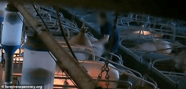 An animal rights activist group using hidden cameras at a piggery captured an alleged act of bestiality (pictured)