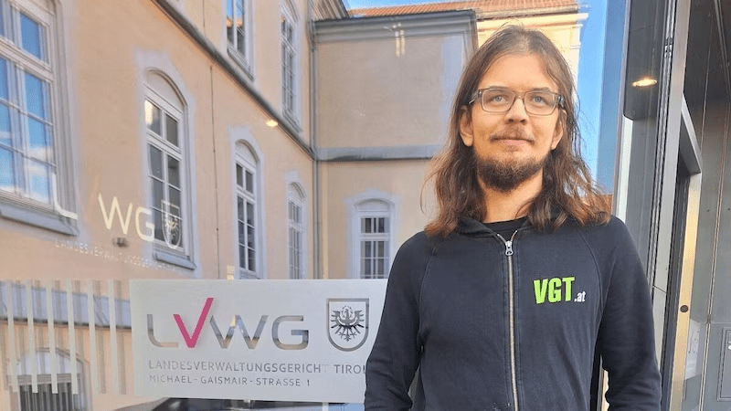 Complainant Georg Prinz in front of the Provincial Administrative Court in Innsbruck. He considers the jam sandwiches in detention to be inadequate nutrition.