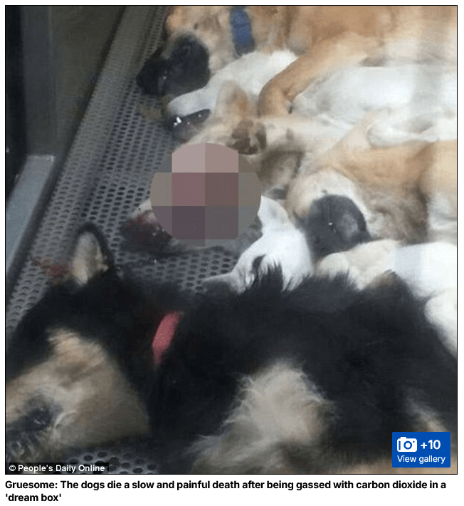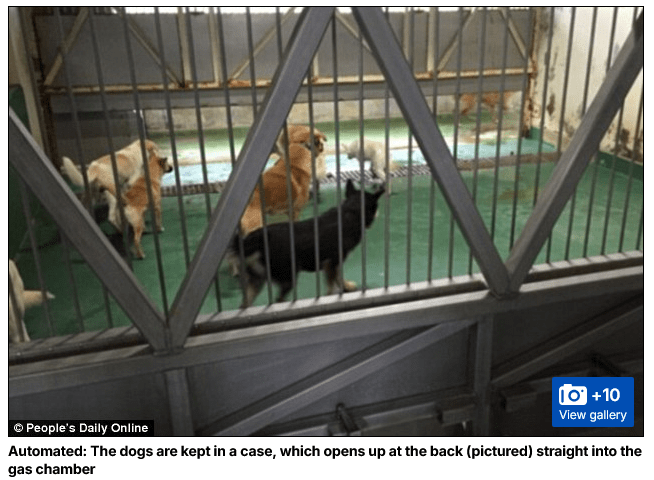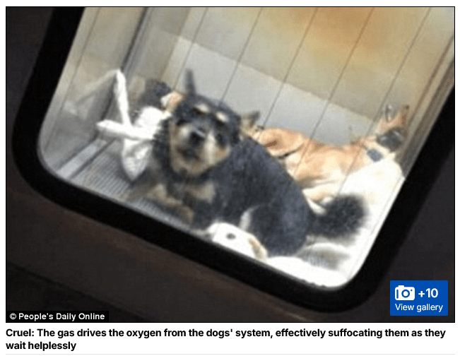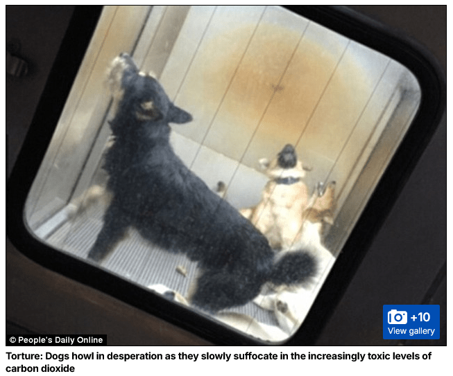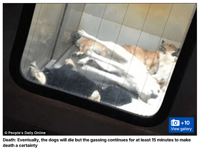 The excruciating procedure involves putting strays into a gas chamber where they are slowly suffocated with carbon dioxide and the whole process can last as long as 15 minutes, reported People’s Daily Online.