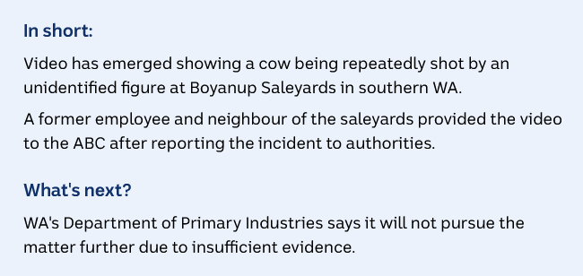 Video of a cow being shot multiple times has put further scrutiny on animal welfare standards at a controversial saleyard in Western Australia’s South West.
