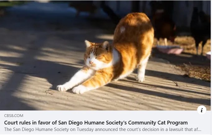 In a bid to recast the Court’s ruling against it, the San Diego Humane Society claimed victory in the case — a claim echoed by apologists for “shelter” malfeasance — even though the Court ruled gainst SDHS and prohibited them from making any changes to the program that would reduce protections for kittens and for adult cats who are social with people.