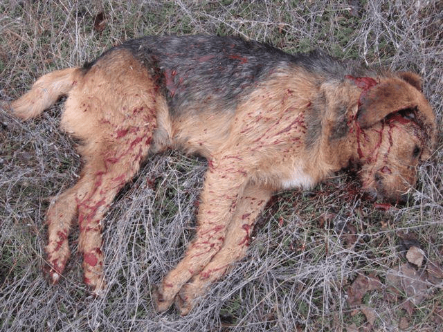 - A dead stray street dog.