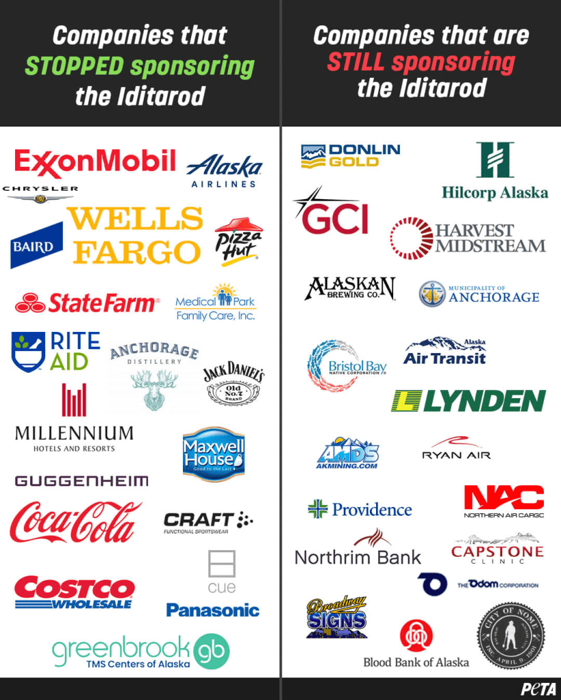 Unfortunately, Iditarod is sponsored by many big companies – see the graphic below.