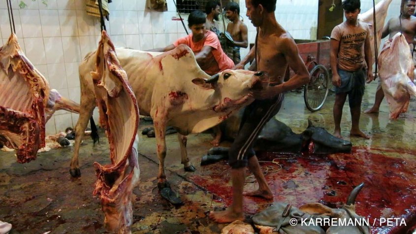Leather production in Bangladesh. Cows are killed without any stunning.
