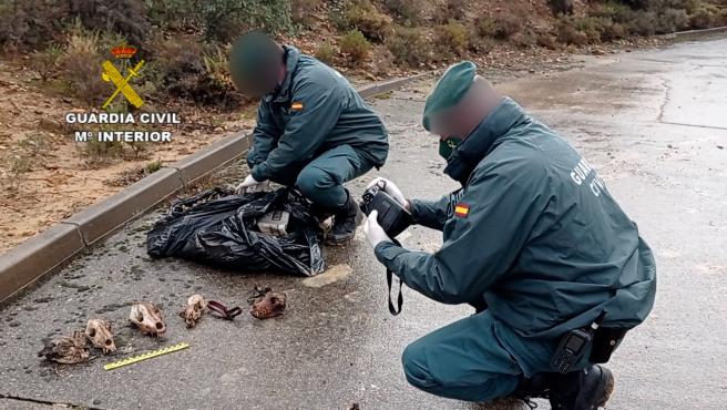 Two agents of the Civil Guard examining the animal remains found. CIVIL GUARD
